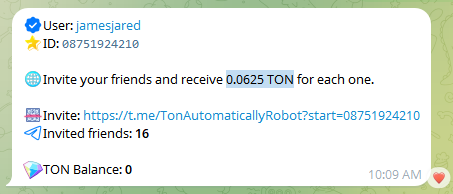 @TonAutomaticallyRobot là một bot được tích hợp trực tiếp trên ứng dụng Telegram, hứa hẹn giúp người dùng kiếm được đồng TON thông qua việc giới thiệu bạn bè.