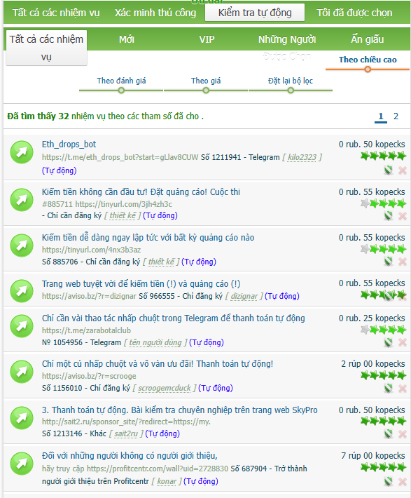 Nhược điểm là tiền ít, chỉ dao động từ 0.2 – 1 rub cho mỗi nhiệm vụ.